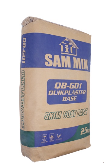 QUIKPLASTER BASE (SKIM COAT BASE) is a high quality polymer modified water-resistant cement-based thin plaster for concrete walls or ceilings. It is also good for surface improvement works to block wall and concrete wall surfaces.